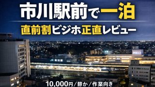 市川駅前のビジネスホテルに直前割プラン(10,000円)で宿泊。駅近・静か・作業向きかを地元民視点で正直レビュー。素泊まり時の注意点も書いています。